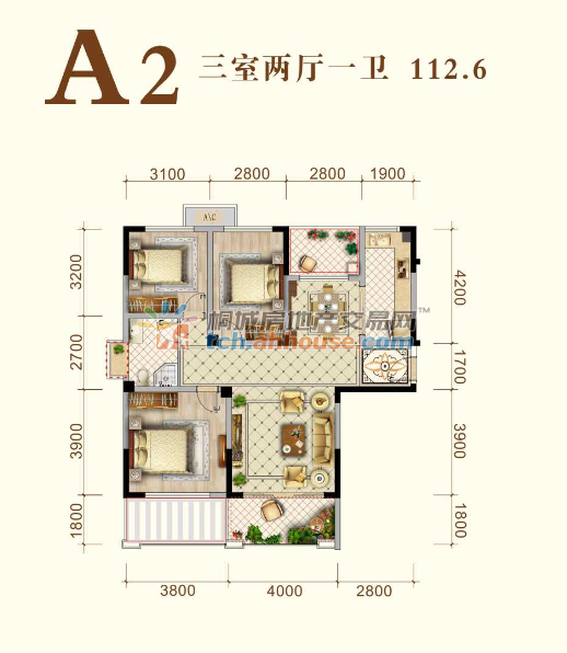 3室2厅1卫 112.6㎡